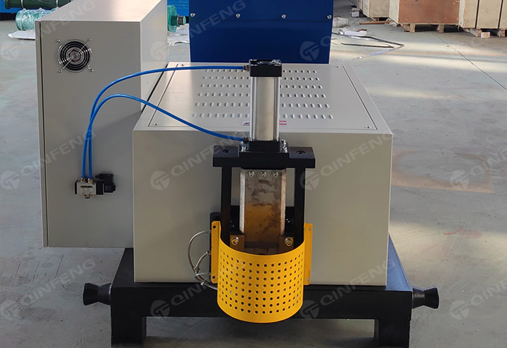 CF-NHM400型號(hào)的熱熔機(jī)采用四軸破碎刀片、雙排平行的刀片軸對(duì)稱地固定在刀片上,刀片在雙軸刀片軸上錯(cuò)位排列,各軸上的刀片通過(guò)計(jì)算的方法均勻地布置在同一方向。每一軸上的第一個(gè)刀片和最后一個(gè)刀片都成90度角。當(dāng)雙軸破碎刀片開始工作時(shí),兩個(gè)平行的刀片軸以不同的旋轉(zhuǎn)方向進(jìn)行旋轉(zhuǎn),形成一個(gè)波浪的控制,這樣材料就可以恒定的速度向下移動(dòng),在經(jīng)過(guò)切割刀片的切割后,會(huì)變成更小的塊狀。EPS熱熔機(jī)里的四軸破碎刀片可以把EPS料變成更小體積的塊,然后通過(guò)濾網(wǎng)。這些不能通過(guò)濾網(wǎng)再次被破碎的料會(huì)最終通過(guò)濾網(wǎng)過(guò)濾掉。該材料將由高速旋轉(zhuǎn)螺桿推送到加熱筒。主機(jī)的螺桿可以輸送、加熱料,使其達(dá)到熱熔狀態(tài),然后擠出并通過(guò)模具冷卻得到規(guī)則型的方塊,更加便于貯存和運(yùn)輸。