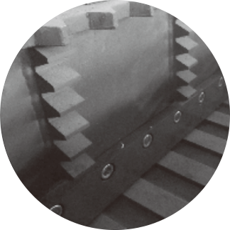 此刀輥是針對ABS.PC.尼龍等堅(jiān)硬材料進(jìn)行特殊設(shè)計(jì)。刀具沉入較深,單次切料較少,減少沖擊,同時降低噪音。